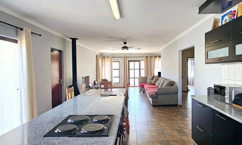 Outside, a private backyard with an entertainment deck and views invites you to enjoy Namibia’s sunshine with family and friends. A double automated garage adds convenience, while pets are welcome too!